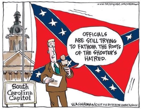 I had no words at first when I heard about the Charleston, SC, Massacre, I just gasped. All I can see when I close my eyes in sorrow, out of respect for this is … Horror … was racist motivated needless bloodshed . This home grown terrorist act done I believe, in response to answer the call for ‘angry white men to stand up’ is a pure racist act done under the champion of the confederate flag flying boldly over the South Carolina state capitol. That battle flag must come down in shame and all situations were the flag is displayed in any state in the union it must be acknowledged for what it is: a racist call to arms to break the union. The flag IS the epitome of hatred, it IS hate speech defiantly flying in the face of the 1st amendment. It MUST be banned as a terrorists symbol and all who scoff at its significance need to know this: it is no different than the ISIS banner. All who belong to racist communities and organizations should be hunted with the same zeal as foreign terrorists and face the same, THE SAME fate. The first place in each state and community to face total expulsion of racist activity and solidarity must be police and state police fraternities. And then the FBI and like federal organizations, the military and all governmental offices and office holders all the way down to the citizen that flys his hate openly in our faces: hate will not be sanctioned in the United States of America because these 9 souls mattered. Amen.