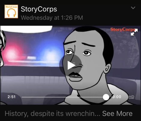 CREDO mobile released StoryCorps’ animated video on Facebook. I saw it on 7/11/2016.