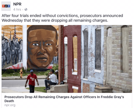 So, Freddie Gray is responsible for killing himself then, huh, Baltimore? That’s the way you are going to play, huh? Cops bear no responsibility for their actions at all is Baltimore’s lesson to its citizens, both black & white. Cops will continue to be mindless brutes unless they go full out and start killing more white sons and daughters, and their mothers join Mothers Of The Movement. Is that what it takes, Baltimore? All mothers need to stand up and give a f*ck. **I’m still pissed off about Trayvon.